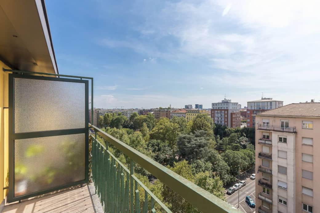 Appartement moderne et chaleureux situé au 9e étage, très lumineux, avec un grand balcon et une magnifique vue sur les toits de Milan.